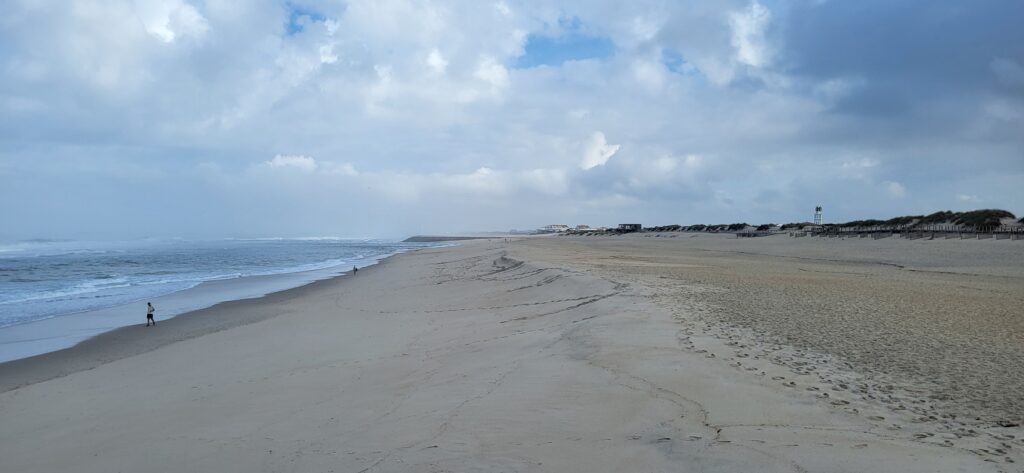 Wir fahren an den Atlantik, ins reizende Dorf Costa Nova. Die traditionell gestreiften Strandhäuser ziehen im Sommer viele junge Besucher an. Auf der einen Seite der Lagune erwartet uns ein kleiner Fischerhafen, auf der Atlantikseite ein herrlicher Sandstrand mit naturbelassenen Dünen und hohen Wellen.