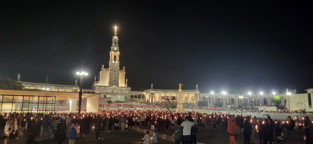 Am Abend erreichen wir Fatima. Hier soll die Jungfrau Maria drei Hirtenkindern erschienen sein. Der Pilgerplatz ist doppelt so groß wie der Petersplatz in Rom. Die neue Dreifaltigkeitskirche bietet 9.000 Personen Platz, es ist der größte Kirchenneubau des 20. Jahrhunderts. Gegenüber thront die Basilika, von deren Turm 61 Glocken stündlich die Melodie des Fatima-Liedes läuten. Die Erscheinungskapelle mit der Marienstatue ist jedoch das Herzstück von Fatima. Von hier startet jeden Abend eine Lichterprozession mit tausenden TeilnehmerInnen.